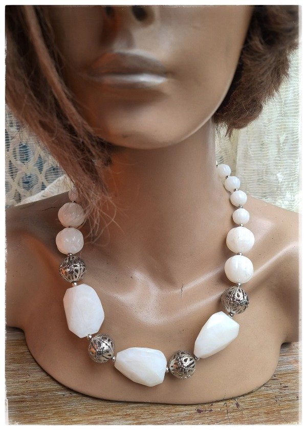 Collar de cuentas grandes blancas
