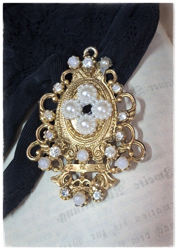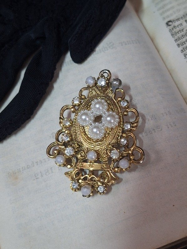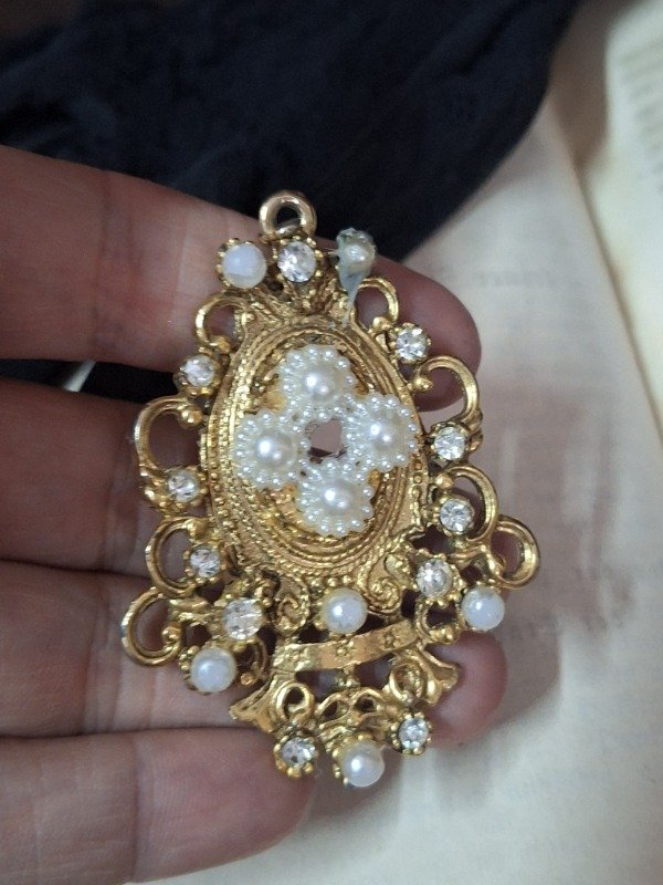 Prendedor oval dorado con perlitas