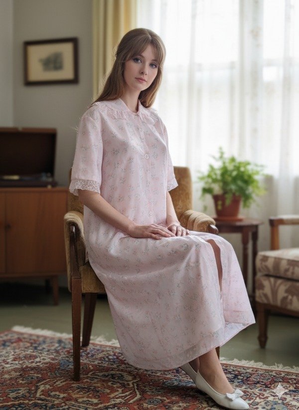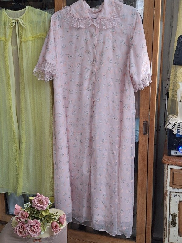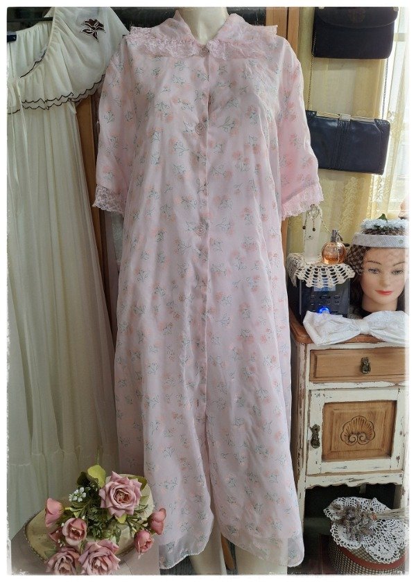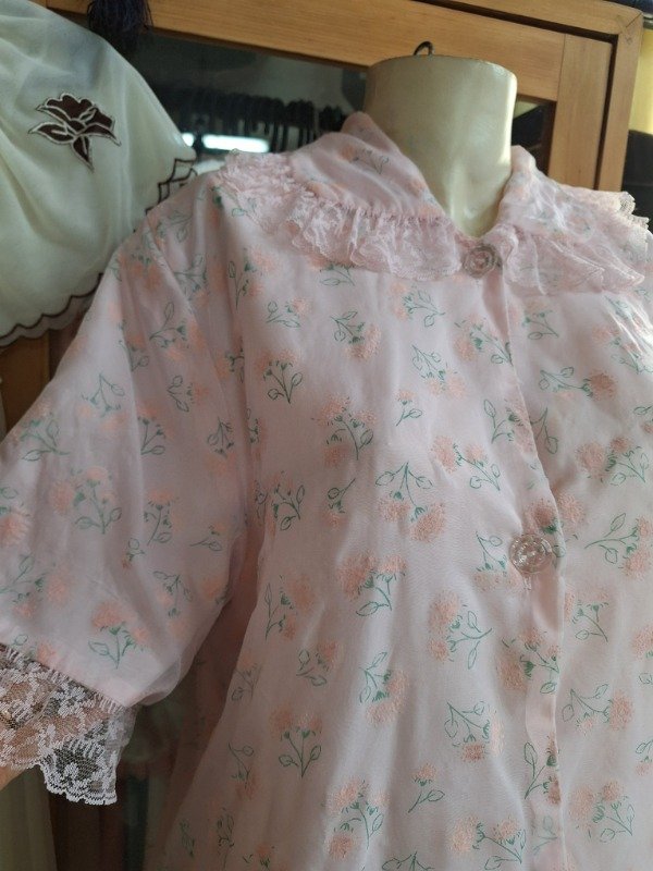 Deshabillé Vintage Microtul Estampado de flores rosa