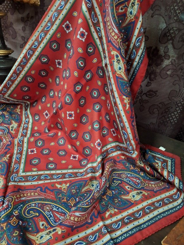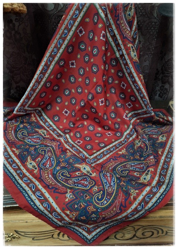Pañuelo cuadrado de seda Diseño sobrio color vino