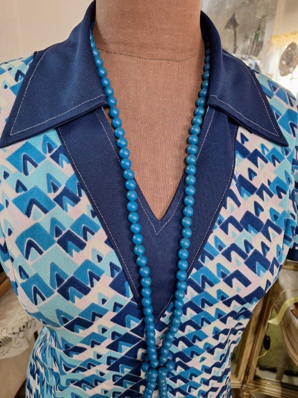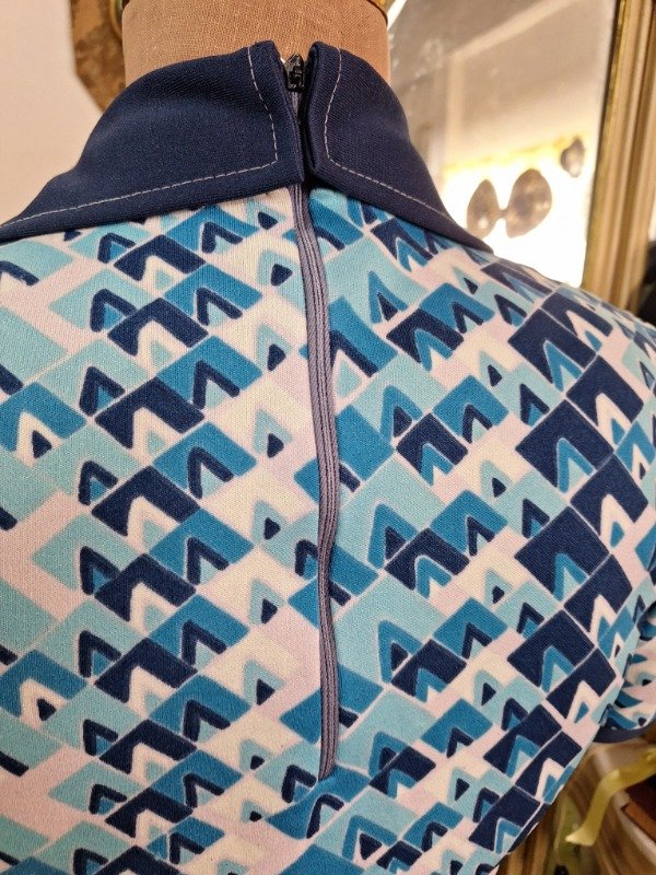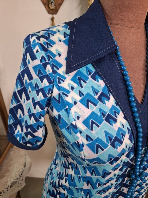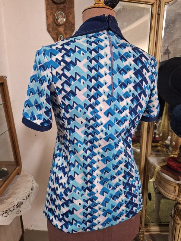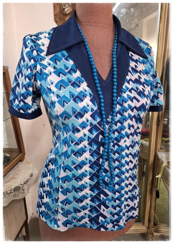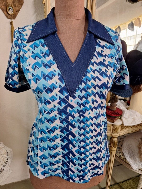 Blusa Jersey Estampado Años 70 azul