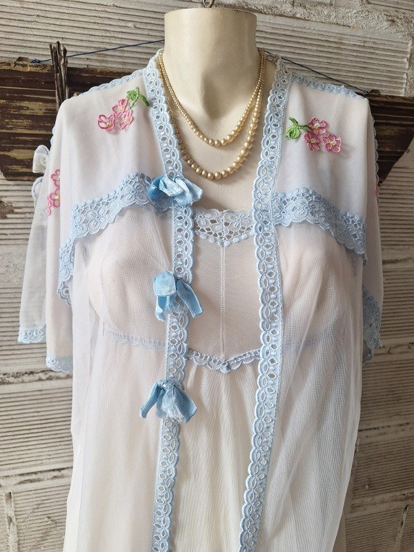 • Buen Estado ( tiene detalles en la tela y pequeños agujeritos en la espalda del deshabillé)