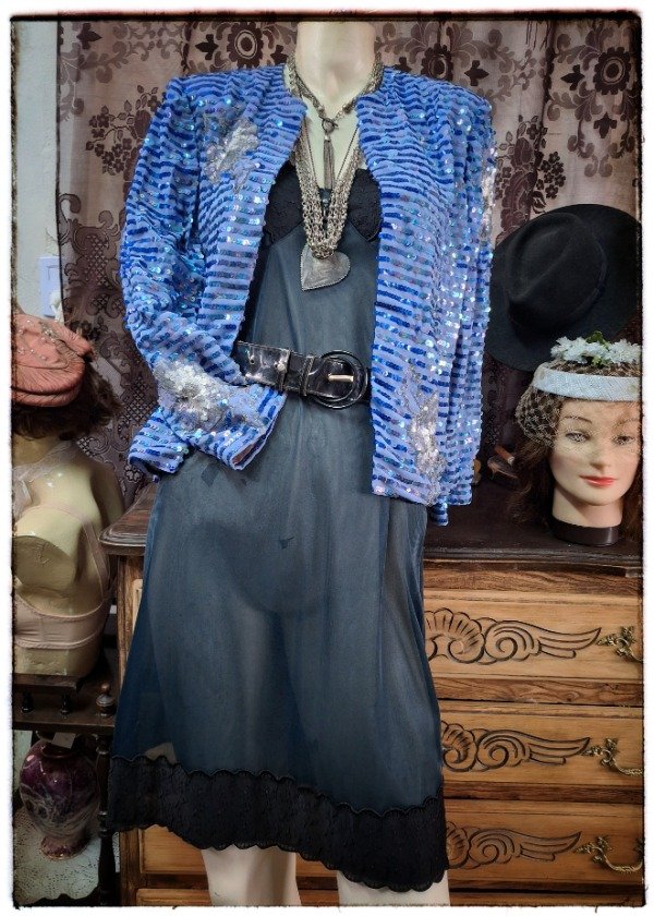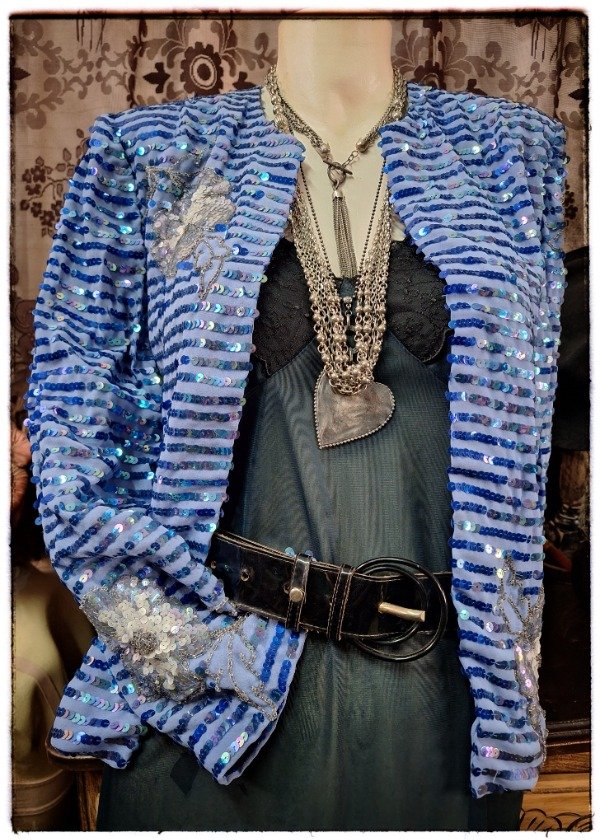 Chaqueta de crep y lentejuelas Años 80