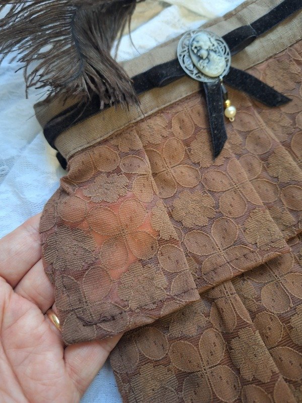Jabot Ancho varias capas de broderie marrón