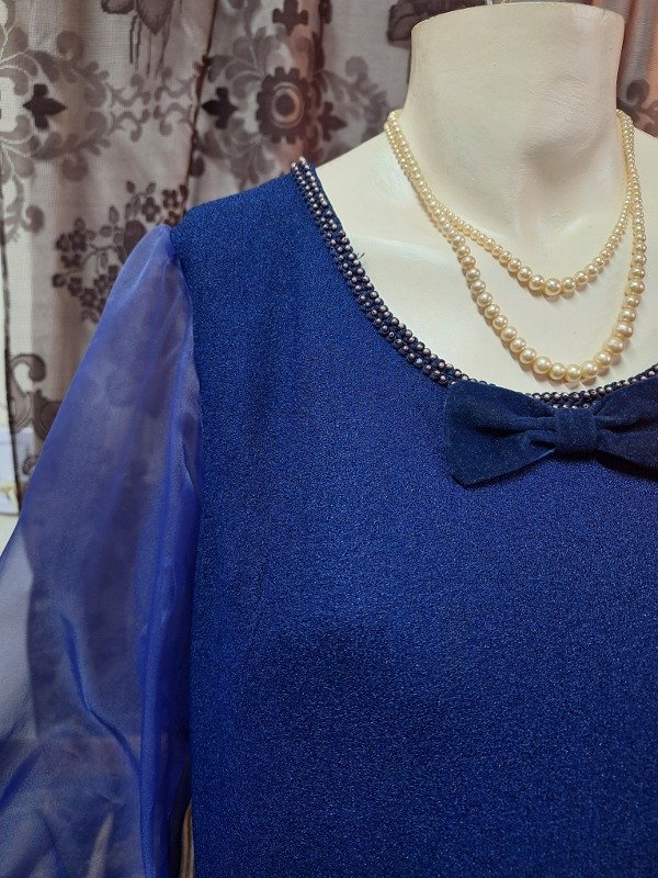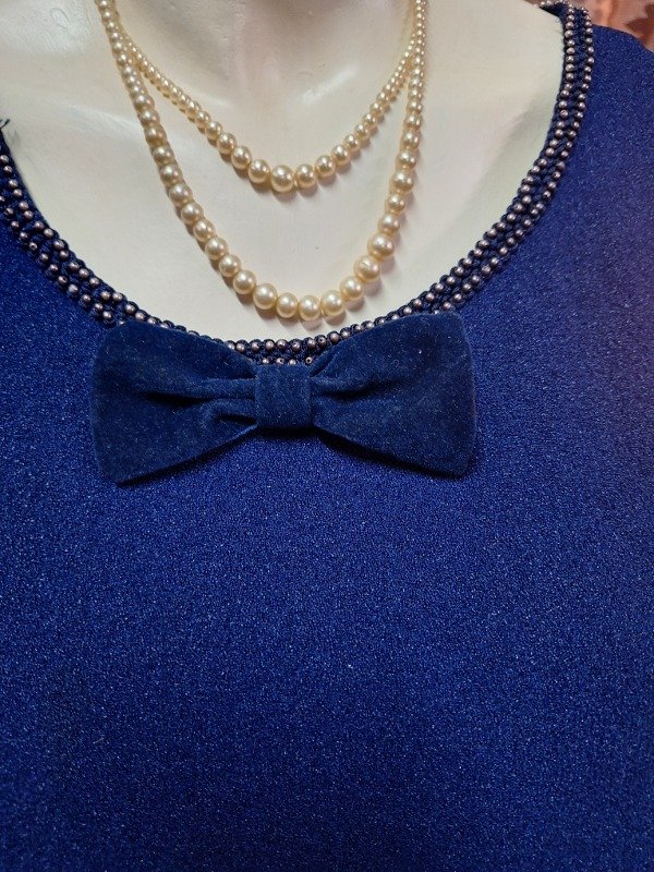 • Detalles de perlitas en el cuello y moño Terciopelo