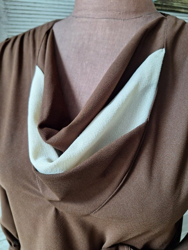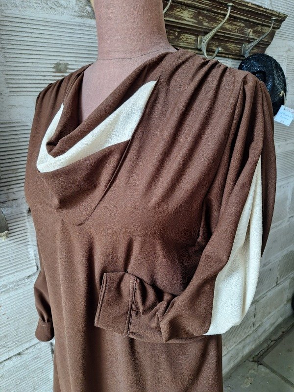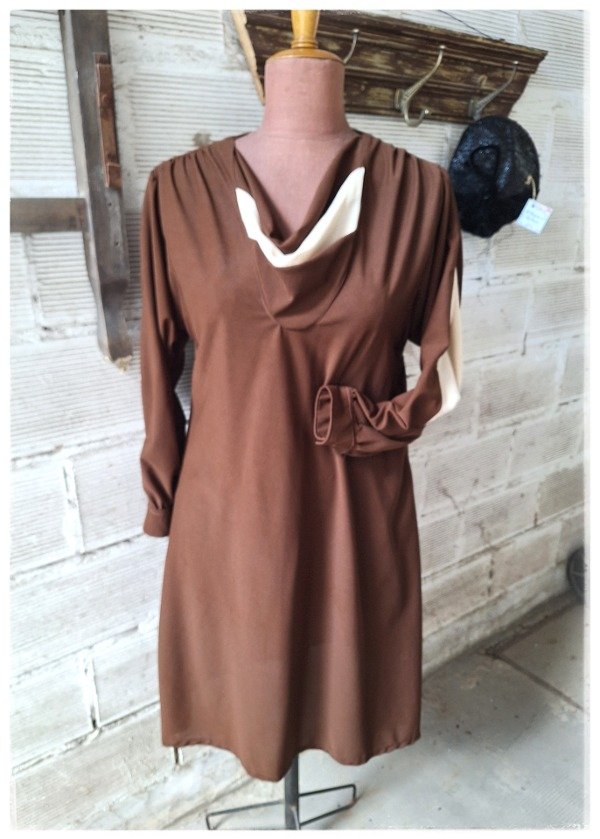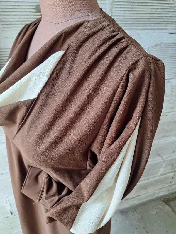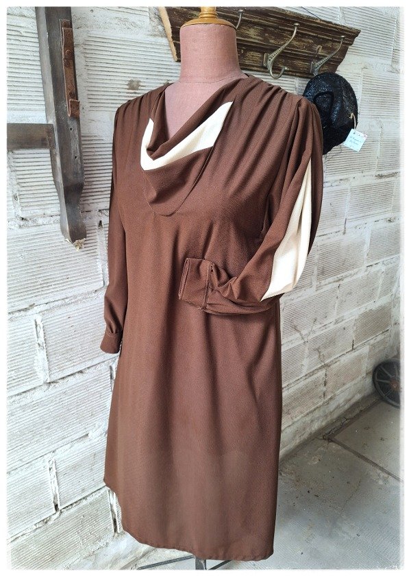 Vestido crep Marrón y beige