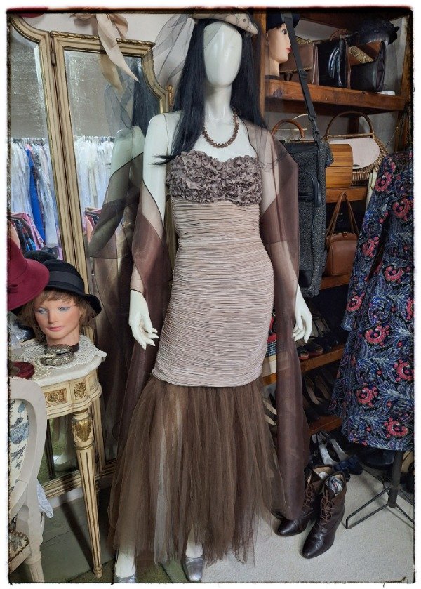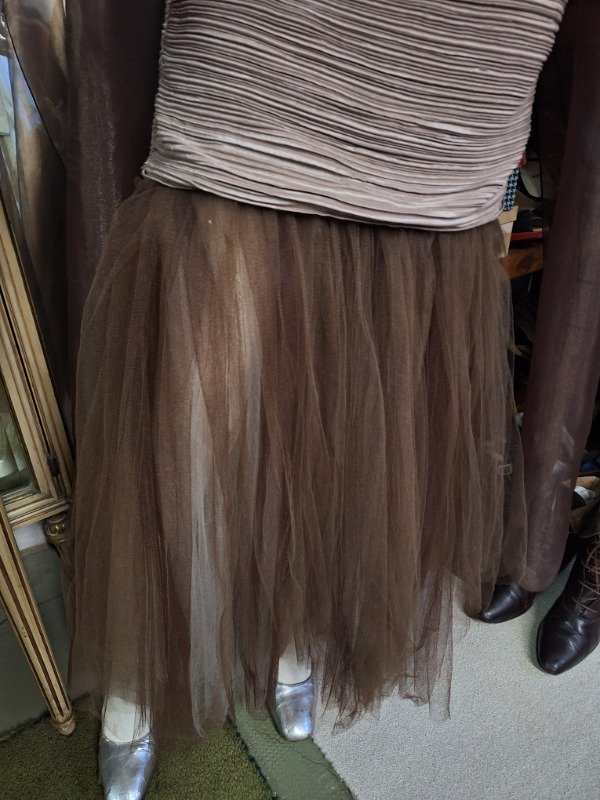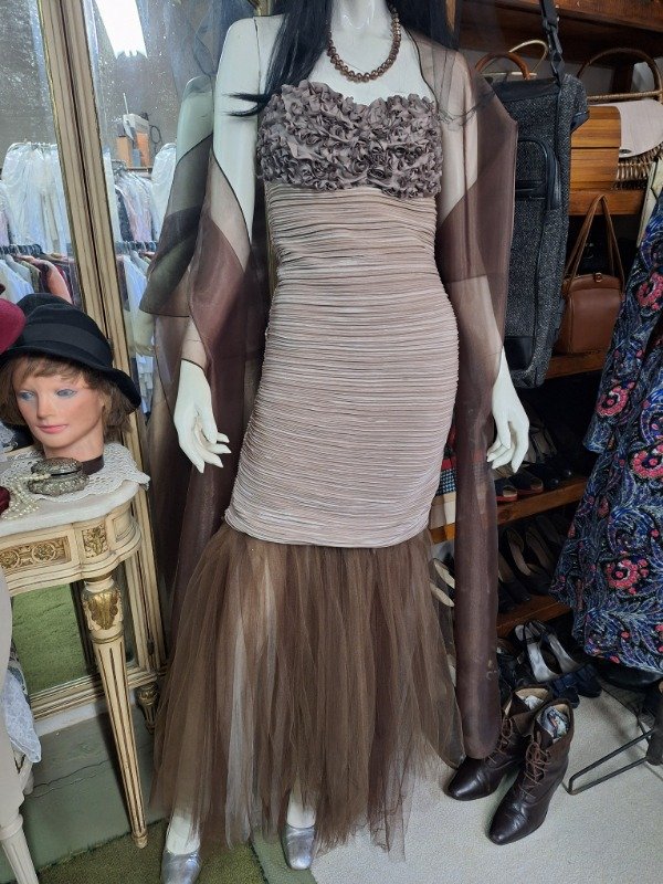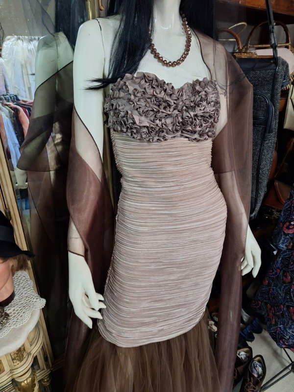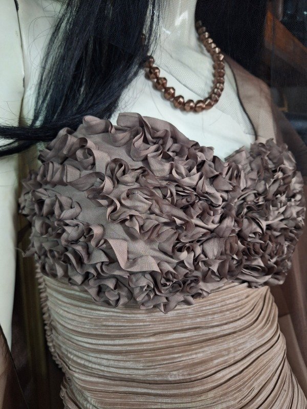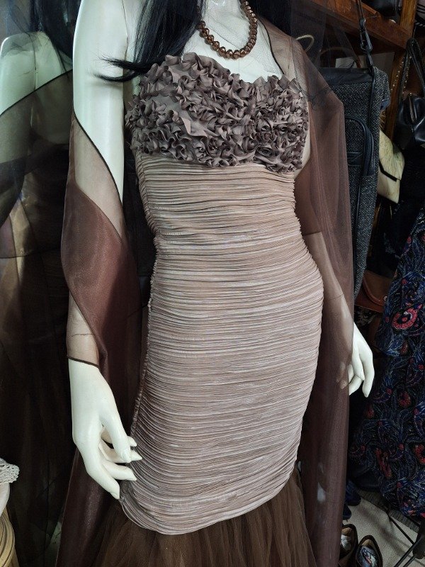 Vestido de Fiesta Drapeado y tul marrón