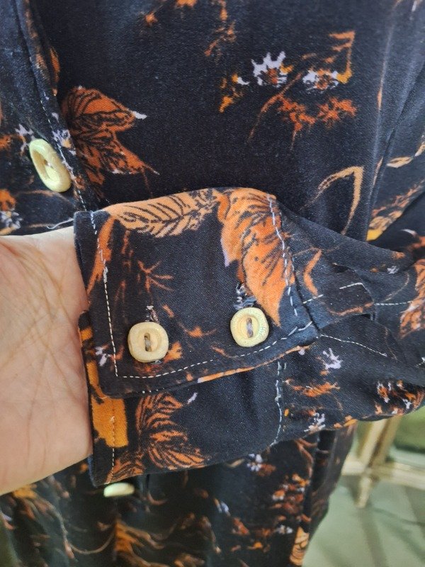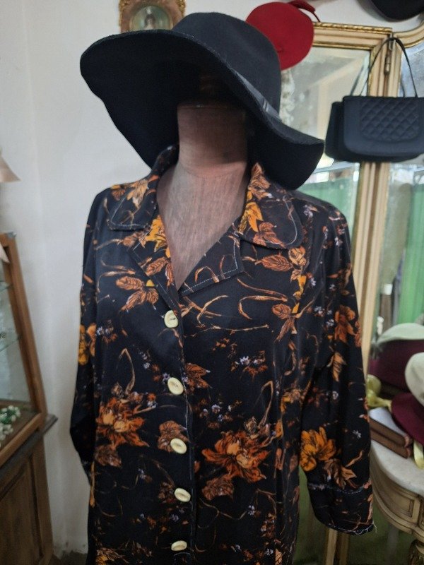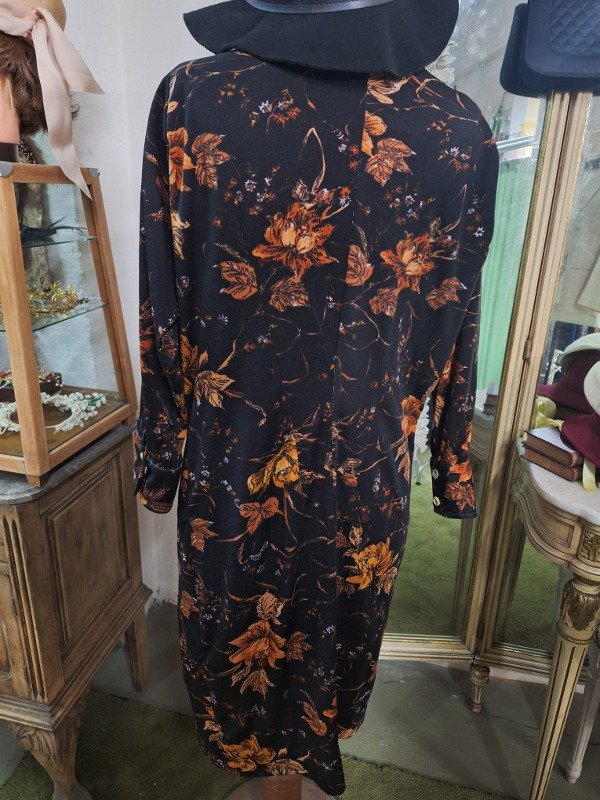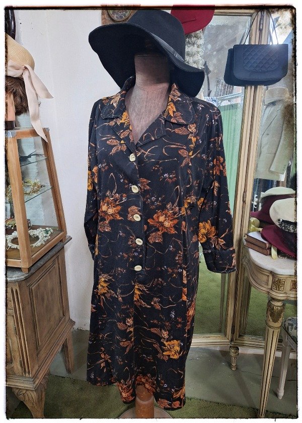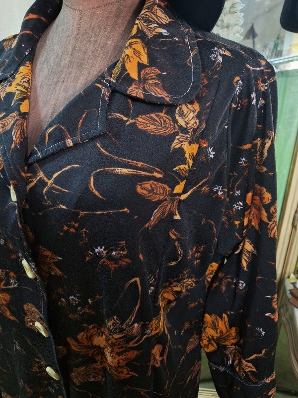 Vestido Jersey Camisero flores Naranjas Años 70'