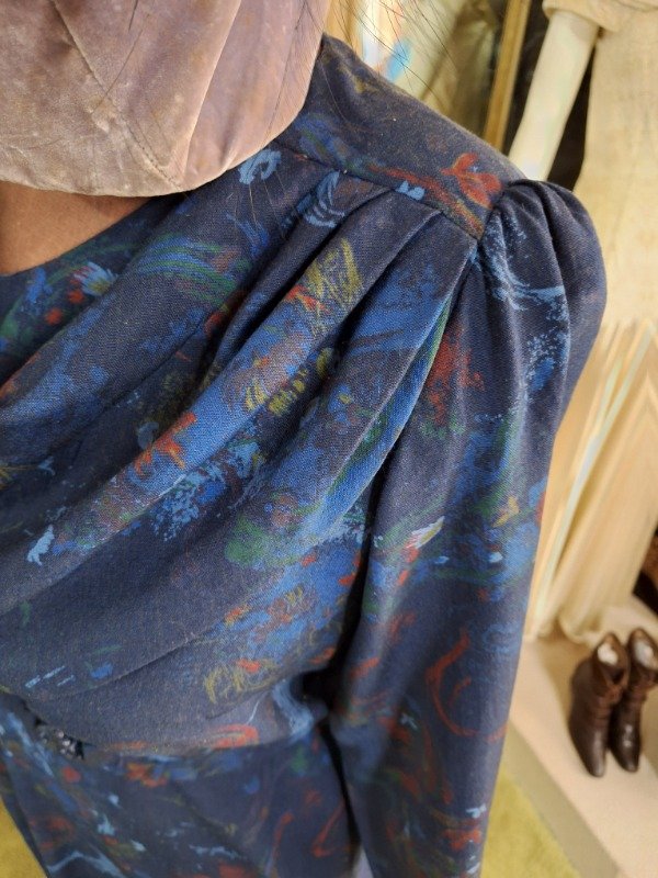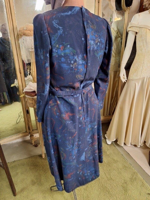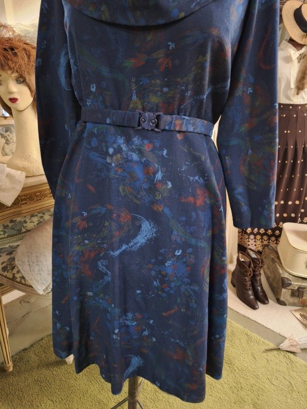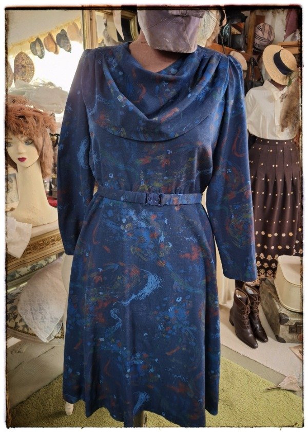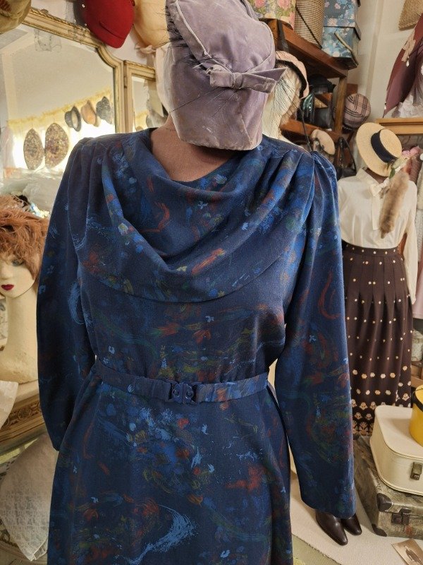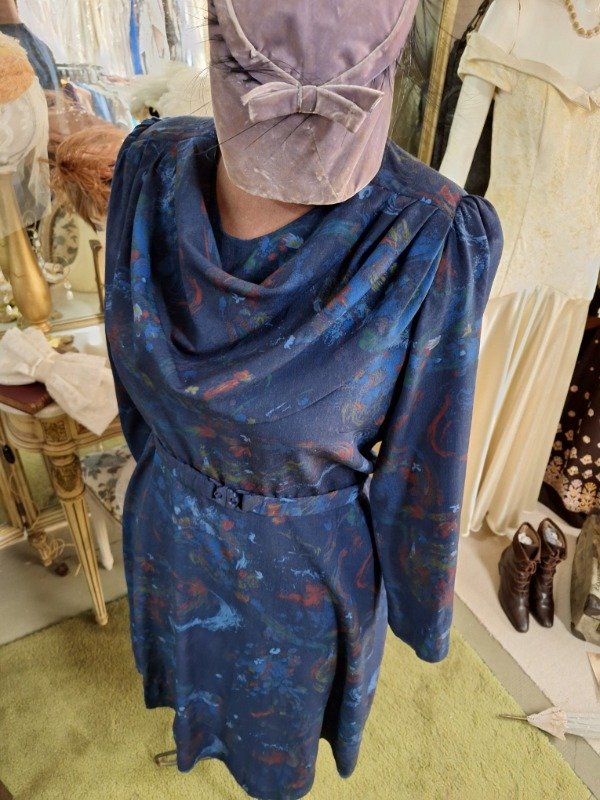 Vestido Vintage Estampado Azul cuello volcado
