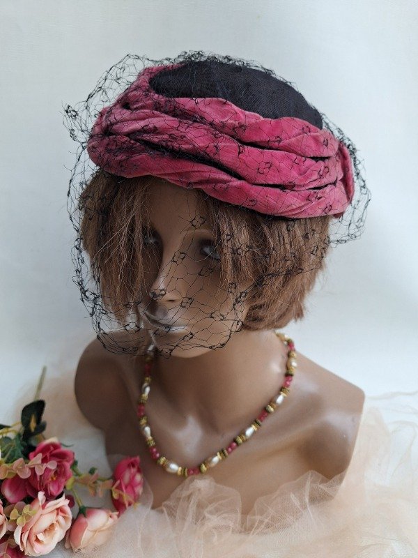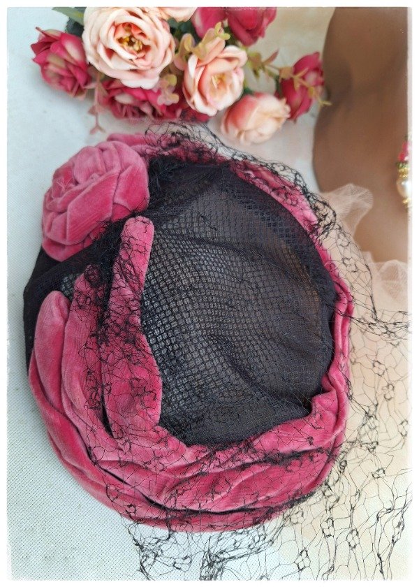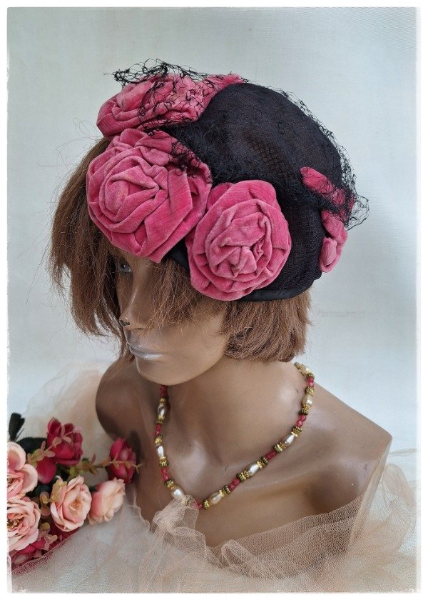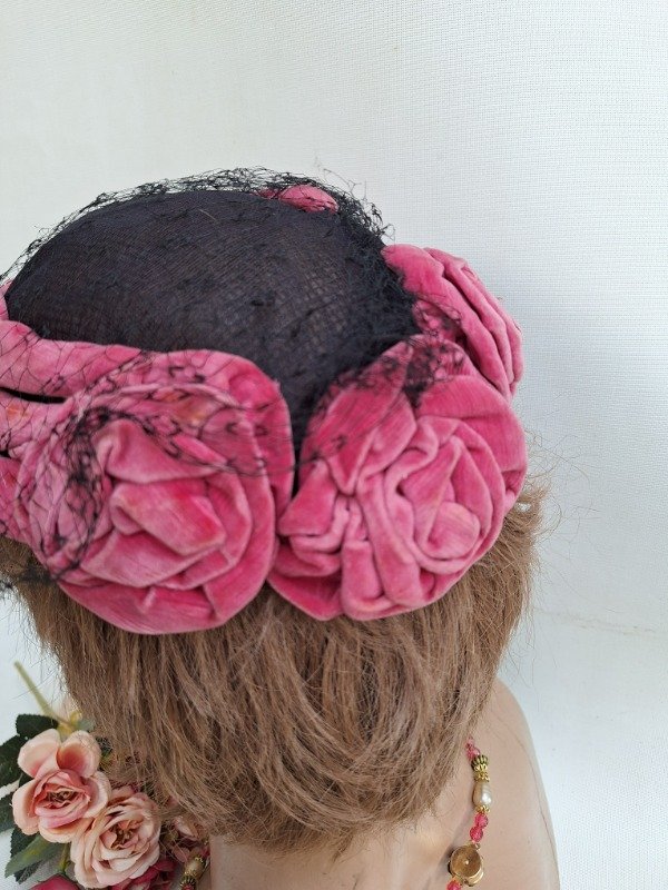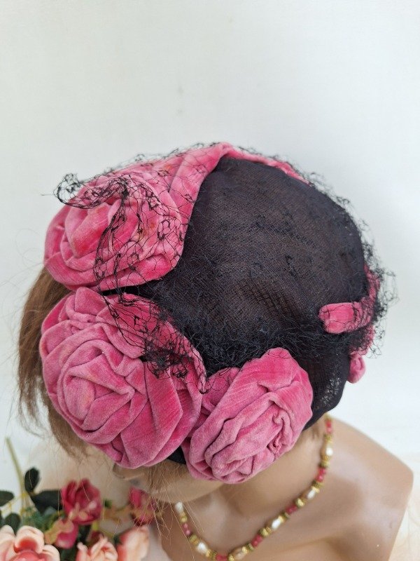 Casquete con rosetas de Terciopelo fucsia