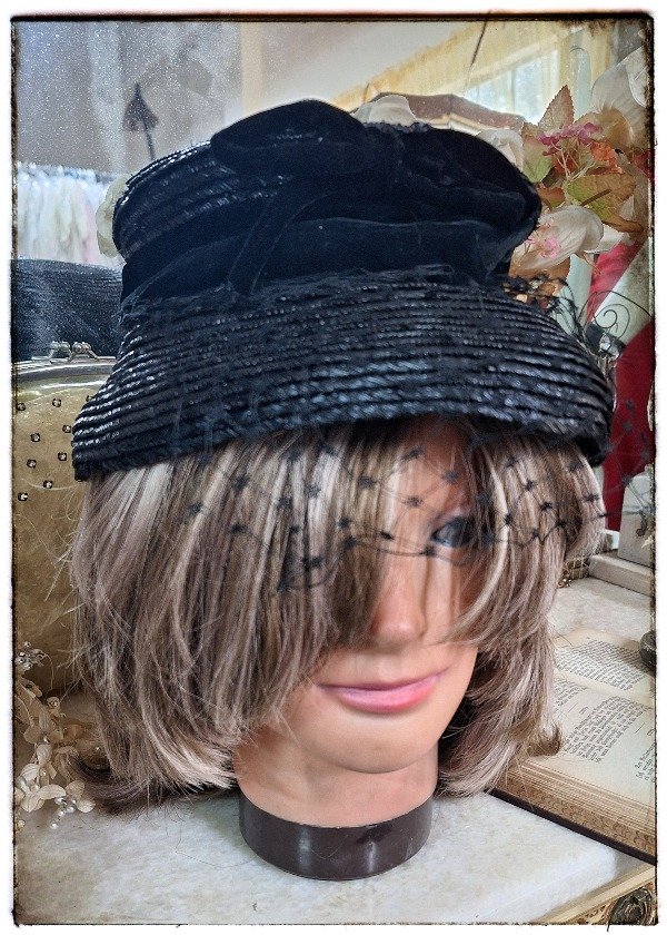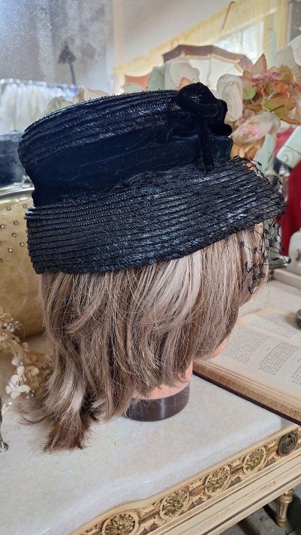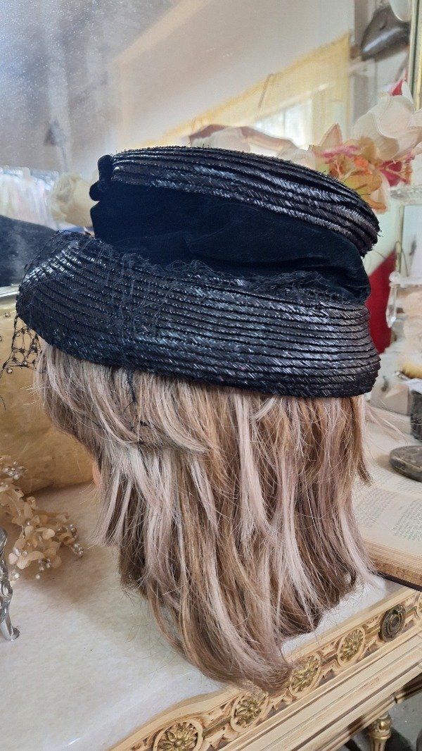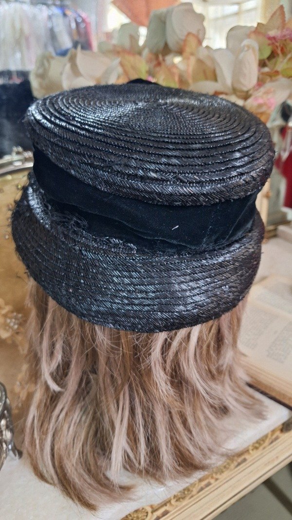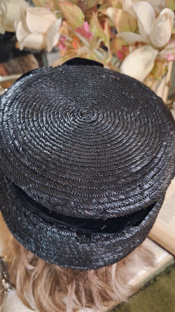Sombrero de Rafia y Terciopelo negro