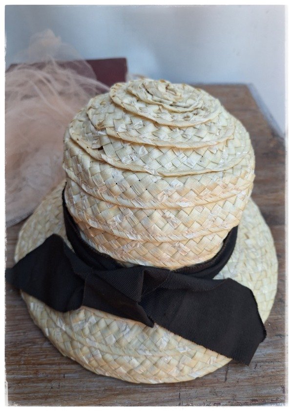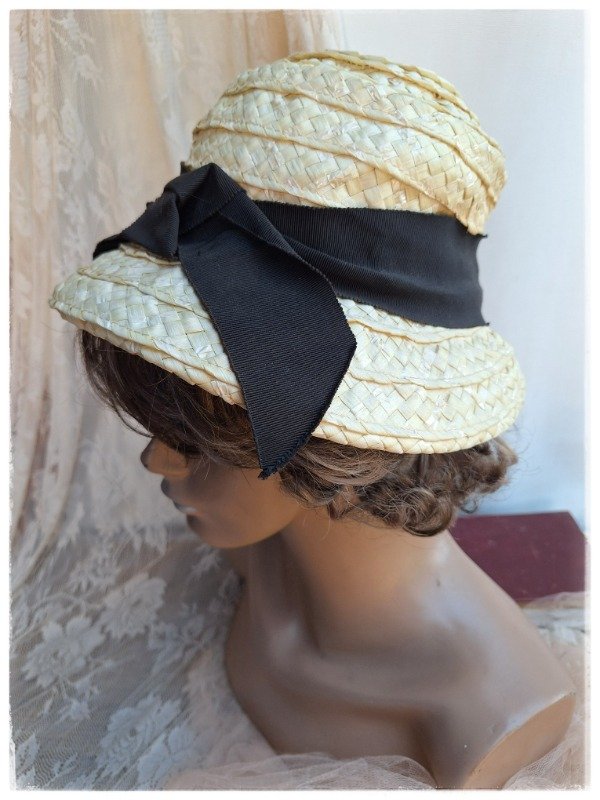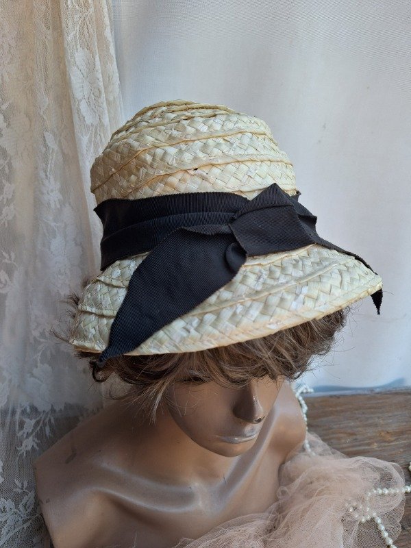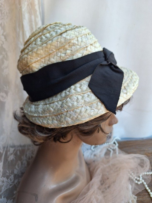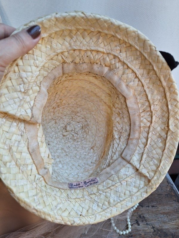 Sombrero Rafia crema moño negro