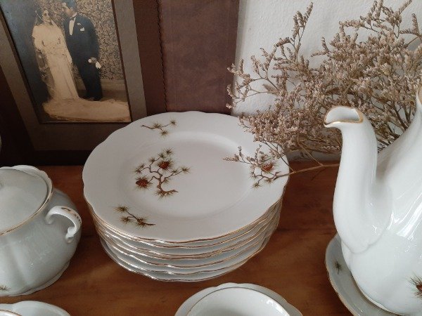 Juego de Té, Café y platos de Postre de Porcelana Nacional Verbano